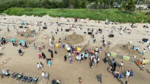 “We have professionals competing from three different countries. We have six sculptors in total, and there’s three different teams,” said Karen Fralich, an organizer of the festival. “And they’re creating masterpieces that are sometimes eight feet tall and eight feet wide. And they could be 15 tonnes of sand. These are huge, huge creations.”